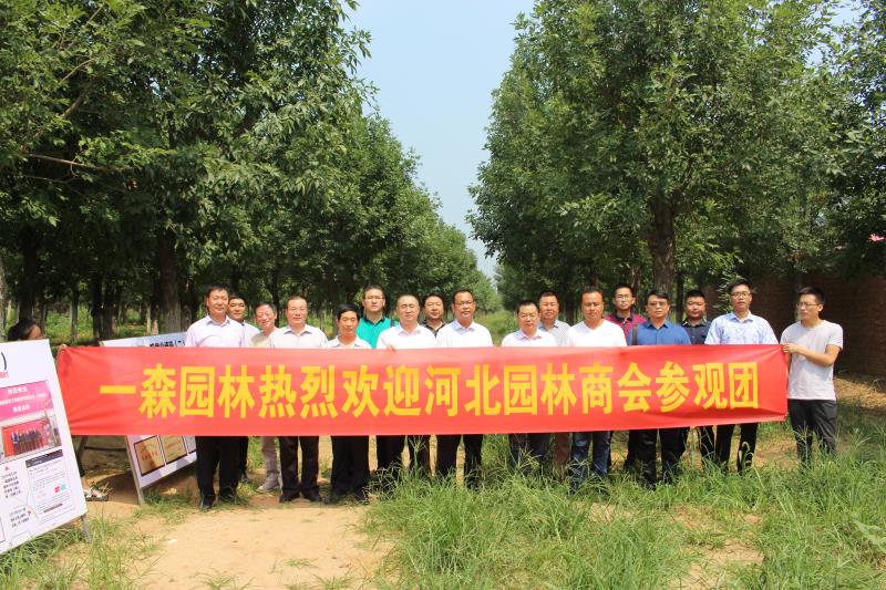 2017年8月9日,河北省園林商會參觀團來一森園林苗木基地參觀考察。參觀團在一森園林董事長耿軍林先生的帶領下參觀了一森園林已建成的大規格白蠟基地的大規格絨毛白蠟以及其他各基地的速生白蠟、法桐、國槐、金枝槐、聊紅槐、楸樹、絲棉木、高桿紫荊、太陽李、紅葉碧桃、金葉榆、榆葉梅和衛矛等樹種。各單位之間進行了深入交流并交換意見,洽談合作,共商發展。