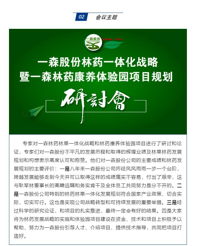 一森股份林藥一體化戰(zhàn)略暨一森林藥康養(yǎng)體驗(yàn)園項(xiàng)目規(guī)劃研討會(huì) 圓滿(mǎn)召開(kāi)